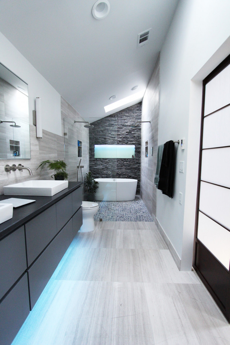 A integração da tecnologia nos banheiros modernos é uma tendência que veio para ficar. A iluminação inteligente permite que você controle a intensidade e a cor da luz através de dispositivos móveis ou assistentes de voz. Isso significa que você pode criar ambientes personalizados para diferentes momentos, seja uma luz suave para um banho relaxante à noite ou uma luz mais forte e energizante para começar o dia.