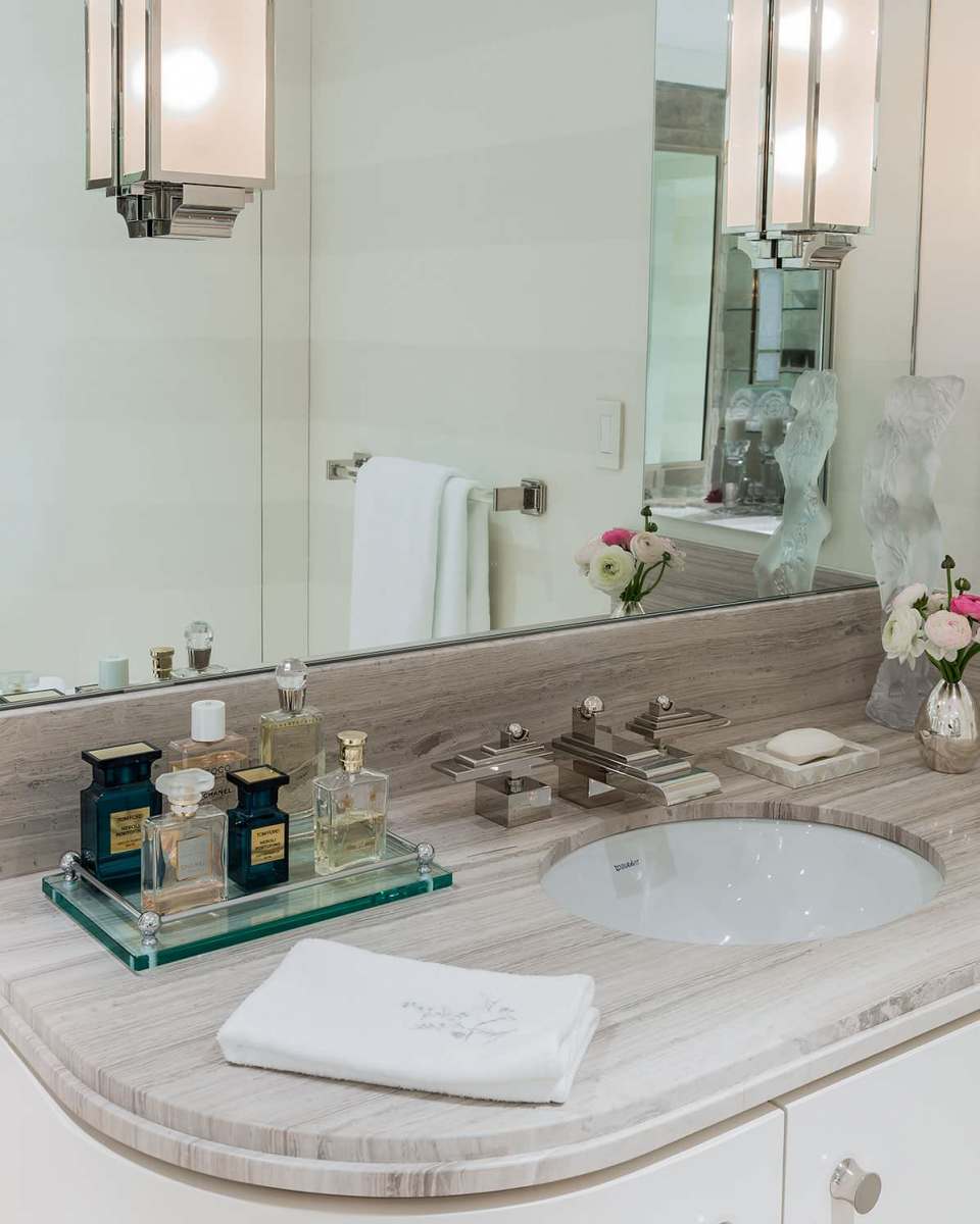 Uma tendência em alta é a utilização de iluminação dedicada ao redor ou atrás dos espelhos. Isso não apenas melhora a funcionalidade, permitindo uma visão clara ao se arrumar, como também adiciona um efeito visual impressionante, criando uma sensação de profundidade e ampliando visualmente o espaço.