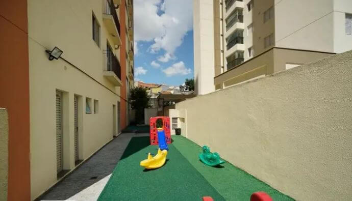 O condomínio tem piscina, academia, salão de festas e playground, o que proporciona comodidade, lazer e segurança.